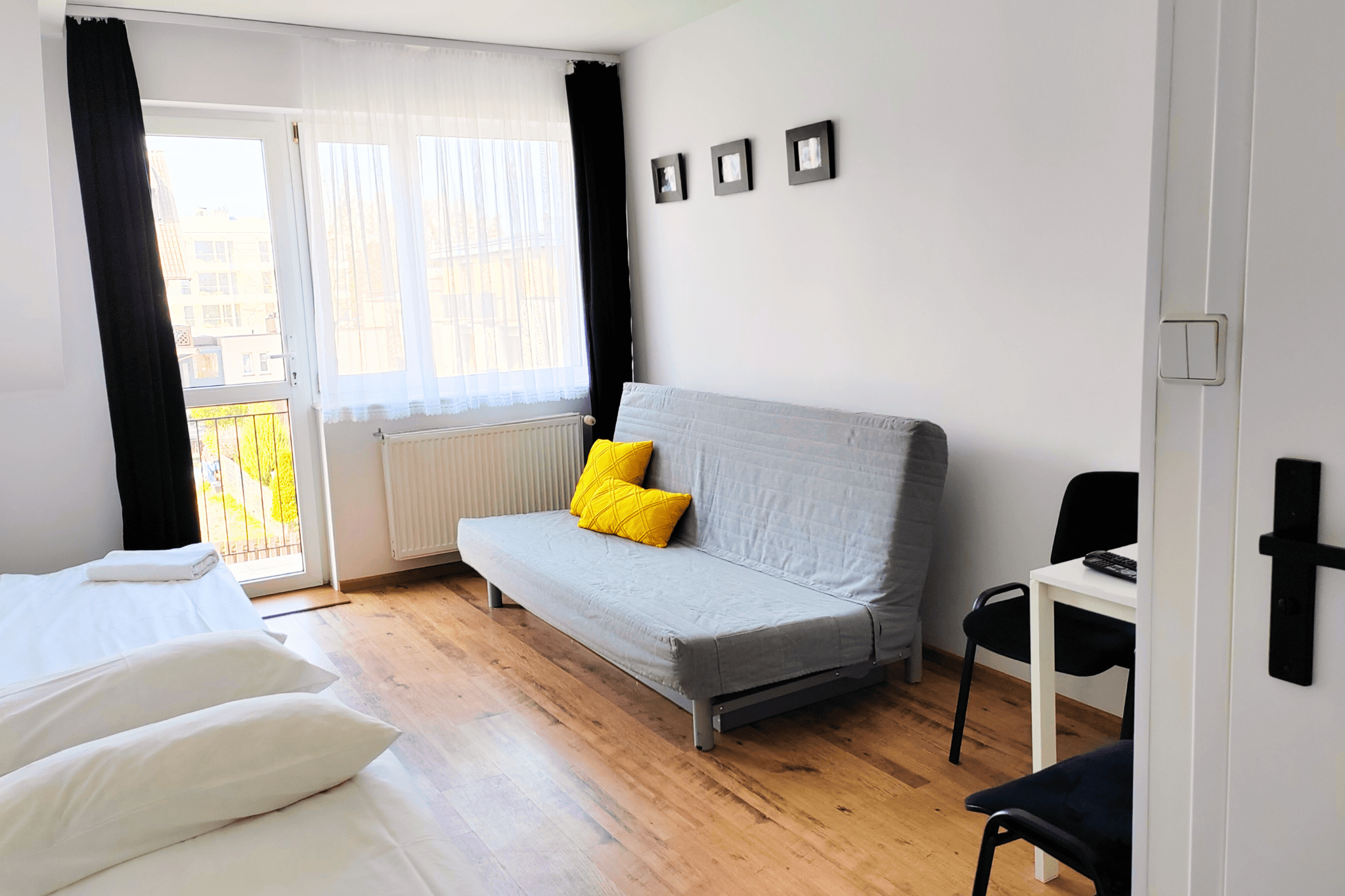 Przytulny pokój rodzinny idealnie zorganizowany dla wygodnego wypoczynku nad morzem.